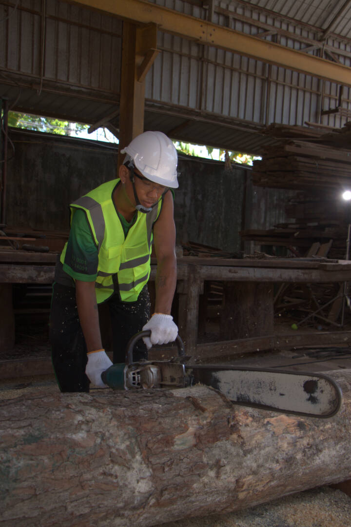 บริการของเรา Play Video Service บริการของ Akrawood บริการอัดน้ำยา สุดคุ้มค่า ให้กับลูกค้า Akrawood ทุกท่าน ติดต่อเรา บริการ การอัดน้ำยาไม้ ด้วยระบบ Vacuum Pump Hydraulic Pressure การอัดน้ำยาไม้ มีแบบจุ่มและแบบผ่านกระบวนการใช้เครื่องอัดน้ำยา แบบจุ่มน้ำยาเขียวจะเป็นที่นิยมมากในโรงเลื่อยไม้ที่ไม่มีเครื่องอัดน้ำยา และตัวไม้จะมีสีเขียว แต่ทางบริษัทอาคราวู๊ดใช้การอัดน้ำยาโดยเครื่อง สูญญากาศ ทุกครั้ง โดยทำการอัดน้ำยาอย่างถูกต้องและตามด้วย การอบน้ำยา ด้วย ตู้อบ Kiln dry เป็นกรรมวิธีเพื่อให้เกิดความสมดุลระหว่างความชื้นภายในไม้กับความชื้นภายนอกไม้ โดยทำให้น้ำหรือความชื้น ระเหยออกจากเนื้อไม้ที่สด หรือไม้ที่มีความชื้นสูง และใช้ความร้อนที่ได้จากไอร้อน จากการต้มน้ำให้เดือด เริ่มต้นจากการให้ความร้อนที่ระดับอุณหภูมิไม่สูงมากนัก (ประมาณ 60 องศาเซลเซียส) และจะค่อยๆ เพิ่มอุณหภูมิขึ้นเรื่อยๆ จนถึงอุณหภูมิที่ต้องการในเวลา 3-4 วัน (ส่วนใหญ่จะใช้อุณหภูมิไม่เกิน 90-95 องศาเซลเซียส) เพื่อ ควบคุมไม่ให้ผิวหน้าไม้แห้งเร็วเกินไปขณะที่ภายในเนื้อไม้ยังมีความชื้นสูง การอบต้องคอยควบคุมอุณหภูมิและความชื้นสัมพัทธ์ให้เหมาะสม และมี ตารางการอบไม้ซึ่งจะแปรผันตามขนาดและชนิดของไม้ และจะแตกต่างกันในแต่ละขั้นของการอบ สำหรับระยะเวลาในการอบไม้เพื่อให้มีความชื้นประมาณร้อยละ 8-12 แต่ละเตาอาจใช้เวลาประมาณ 7-15 วัน บริการ การอัดน้ำยาแบบเต็มเซลล์ (Full cell process) เป็นการอัดน้ำยาโดยมีวัตถุประสงค์ให้น้ำยาสามารถซึมเข้าไป ในเซลล์เนื้อไม้มากที่สุด เริ่มจากการนำไม้ที่ผ่านการคัดแยกแล้วบรรจุในถังอัดน้ำยาแล้วไล่อากาศและน้ำภายในเซลล์ไม้ด้วยระบบ สุญญากาศ จากนั นจึงปล่อยน้ำยาเข้าเต็มถังด้วยแรงดัน 7- 13 กิโลกรัมต่อตารางเซนติเมตร ที่อุณหภูมิ 80-100 องศาเซลเซียส เพื่อให้น้ำยาเข้าไปในเนื้อไม้ได้ทั่วทุกเซลล์ โดยใช้เวลาประมาณ 2-3 ชั่วโมง หลังจากนั้นทำการลดแรงดันและปล่อยน้ำยาออกจากถัง แล้วทำสุญญากาศอีกครั้ง บริการ บริการเลื่อยไม้ ตามขนาดที่ต้องการ เรามีบริการจัดทำเเละเลื่อยไม้ตามขนาดที่ลูกค้าต้องการ CUT TO SIZE บริการตัดไม้ตามขนาด Play Video บริการ LVL นวัตกรรม (Laminated Veneer Lumber) การเคลือบผิวแผ่นไม้อัดจะถูกทำให้แห้งและเม็ดของแผ่นไม้อัดแต่ละแผ่นนั้นจะไปในทิศทางเดียวกัน สิ่งนี้ทำให้ LVL แข็งแกร่งกว่าและสม่ำเสมอกว่าไม้เนื้อแข็งตามธรรมชาติ ในเชิงไม้แปรรูป ความทนทานที่เพิ่มขึ้นของการเป็นผลิตภัณฑ์ไม้ หมายความว่า LVL มีแนวโน้มที่จะหดตัวหรือแปรปรวนน้อยกว่า อีกทั้ง LVL ยังสามารถรองรับน้ำหนักที่มากขึ้นและขยายระยะทางไก
